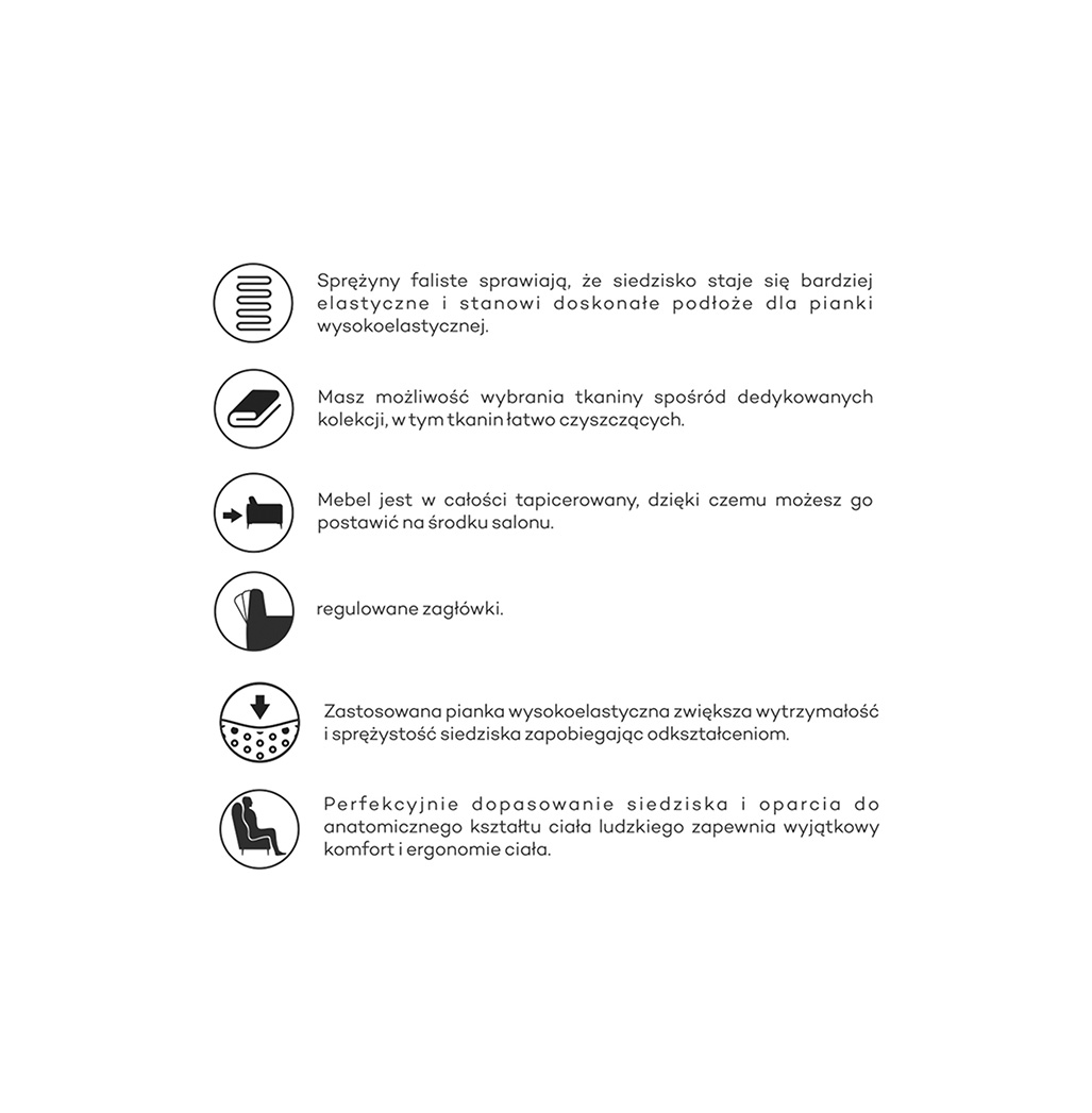 | WYPEŁNIENIE | SIEDZISKO: PIANKA HR, SPRĘŻYNY FALISTE