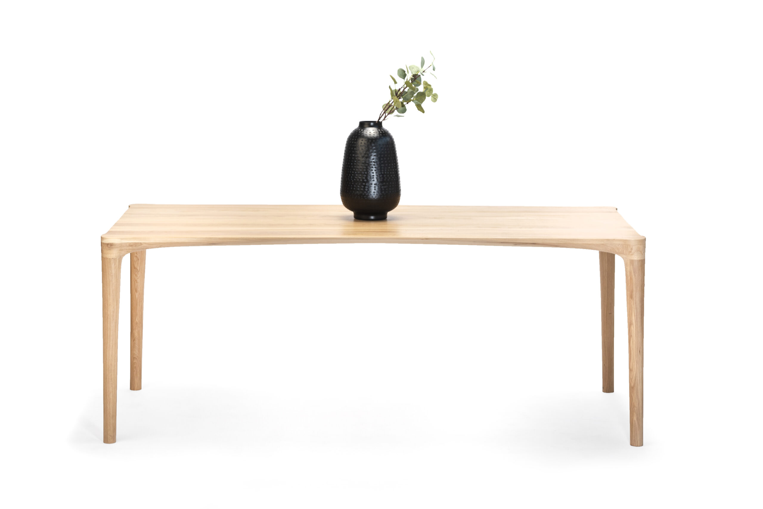 Stół Hoya to efekt mozolnych poszukiwań lekkiej formy wykonanej w stu procentach z drewna. W gąszczu konstrukcji opartych na malowanej proszkowo stali Hoya jest projektem zdecydowanie niszowym. Zaoblone łączenie nóg i blatu sprawia, że stół jest delikatną, nierozerwalną bryłą, a nieliniowe podfryzowanie blatu dodaje mu charakteru.